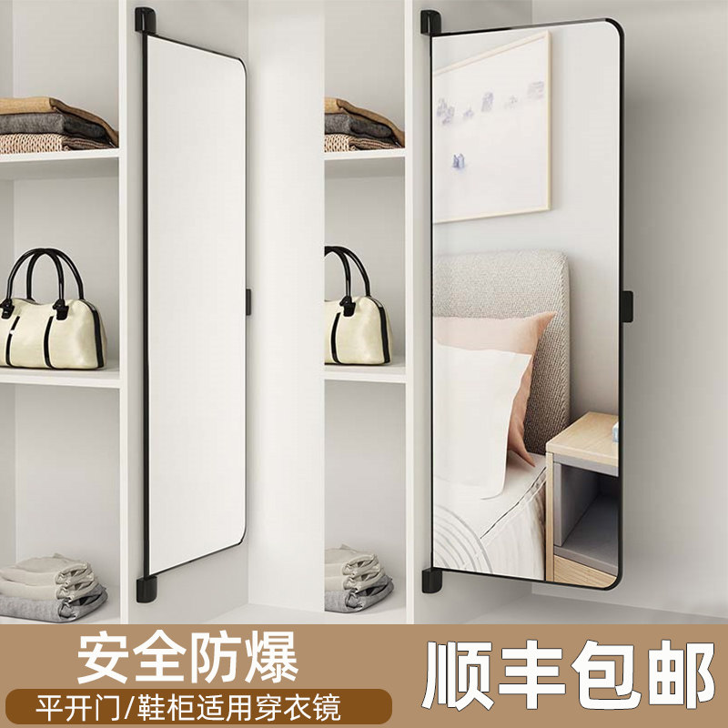 衣柜镜子内装 衣橱全身试衣镜折叠穿衣镜内置 隐形旋转平开门隐藏式