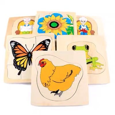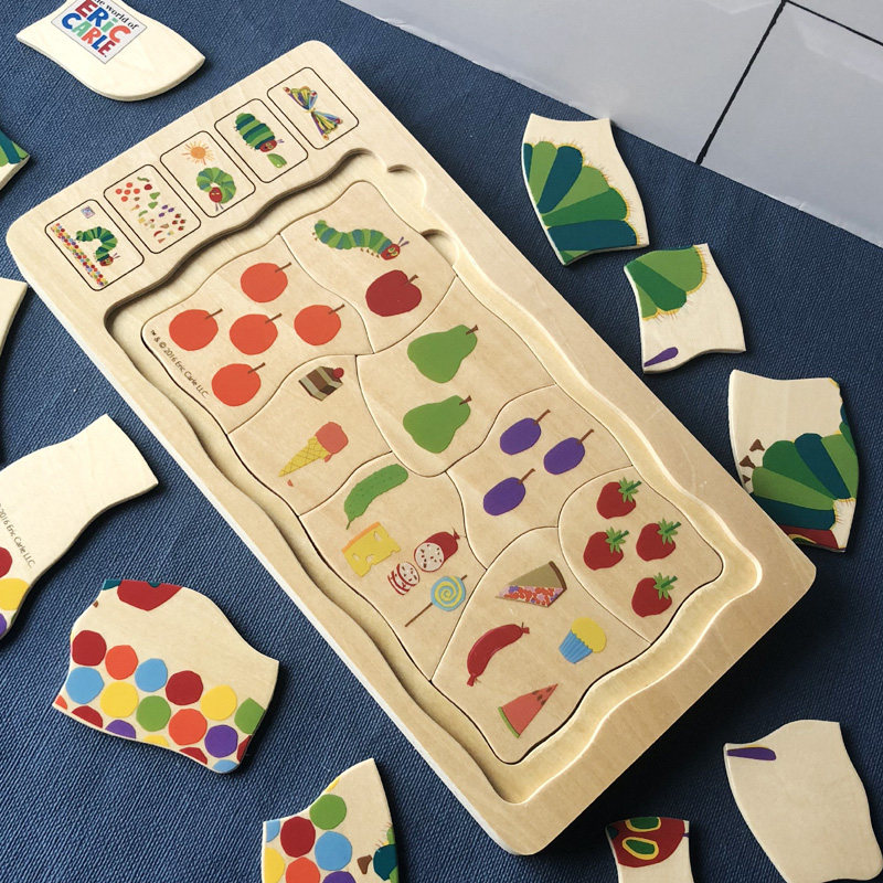 好饿 毛毛虫木制手抓拼图蝴蝶成长加厚大块拼板2岁宝宝益智嵌板