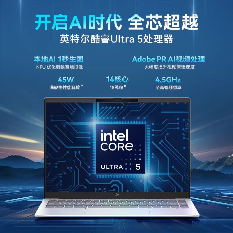 惠普可选星Book Pro14英特尔酷睿ultra5轻薄笔记本电脑便携AI学生办公本 国家补贴15%