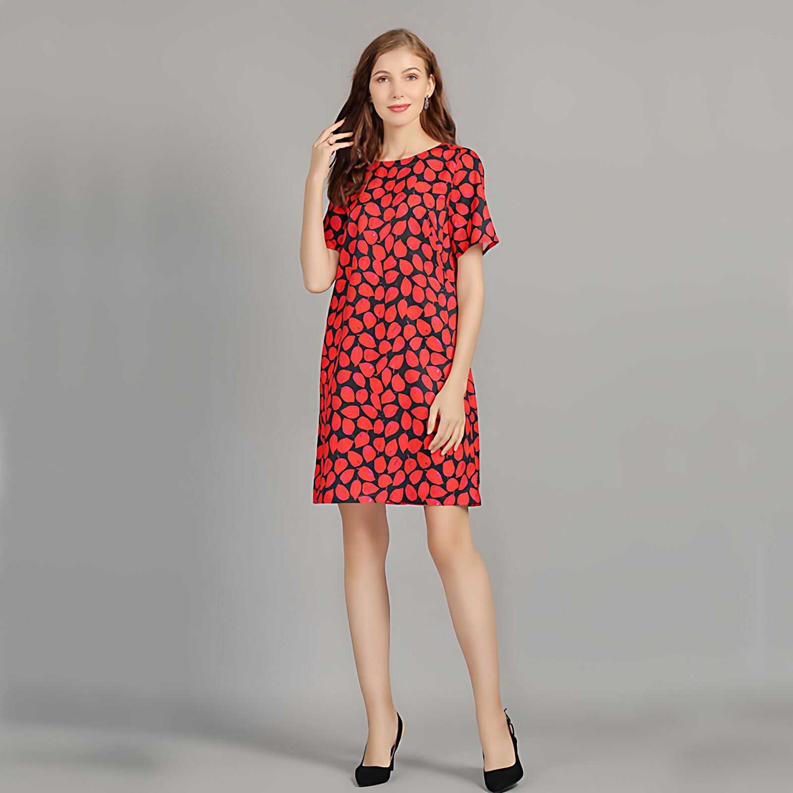 夏季 女装 直筒a字中国红雪纺高端精致超好看连衣裙子 大码 2026新款