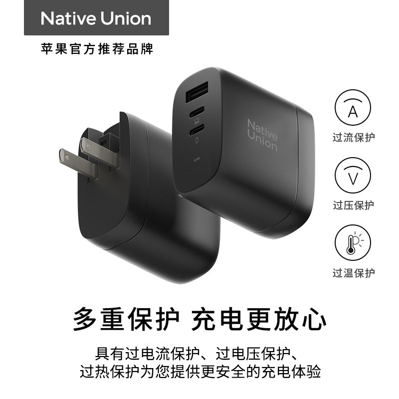 Native 16快充头插头Typec安卓pd笔记本macbook华为iPad手机140W Union适用苹果67W氮化镓双口充电器iPhone17