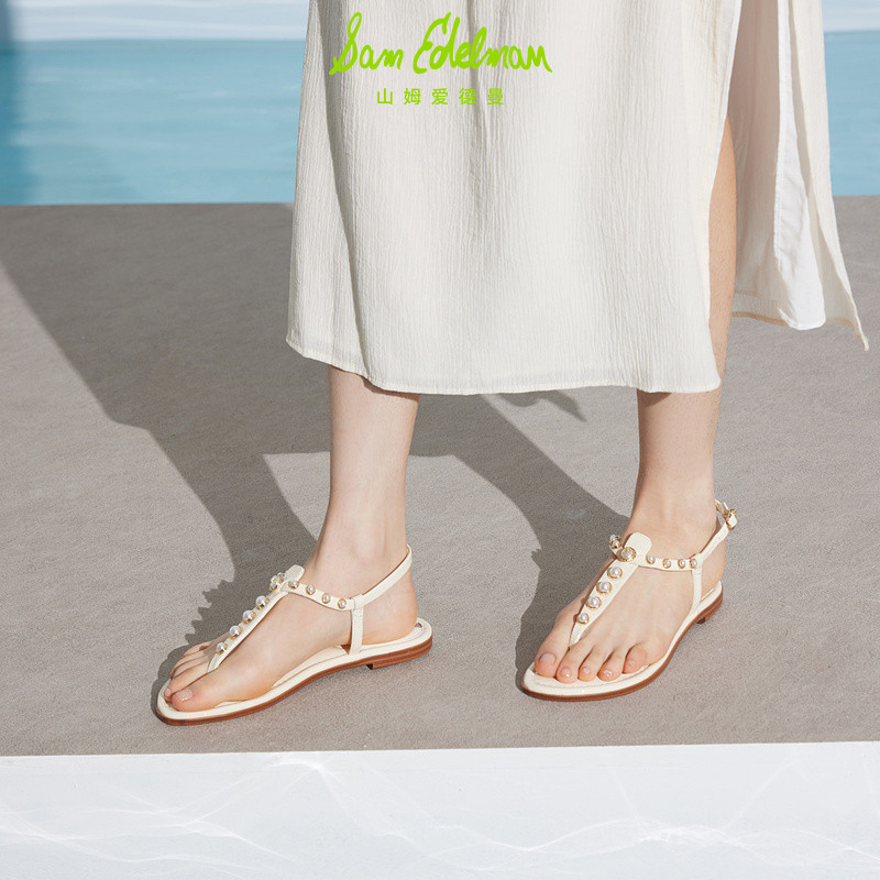 女GIGI SAM 饰夹趾凉鞋 珍珠装 PEARL EDELMAN山姆爱德曼夏沙滩时尚