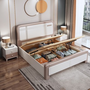 实木床1.8米现代简约主卧储物双人床1.5单人经济型家用收纳高箱床
