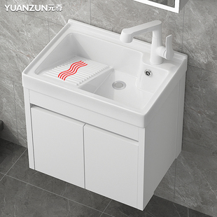 阳台洗衣台盆蜂窝铝洗手盆柜组合带搓板陶瓷一体水槽悬挂式 洗衣池