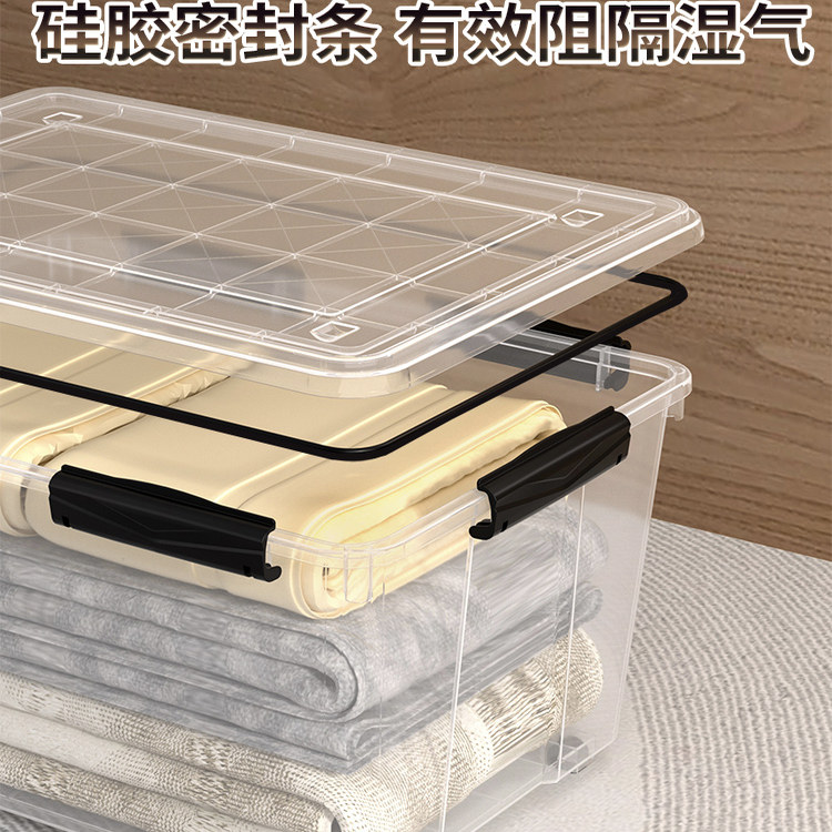 透明防潮收纳箱特大号密封箱家用带硅胶圈储物箱大容量防霉整理箱
