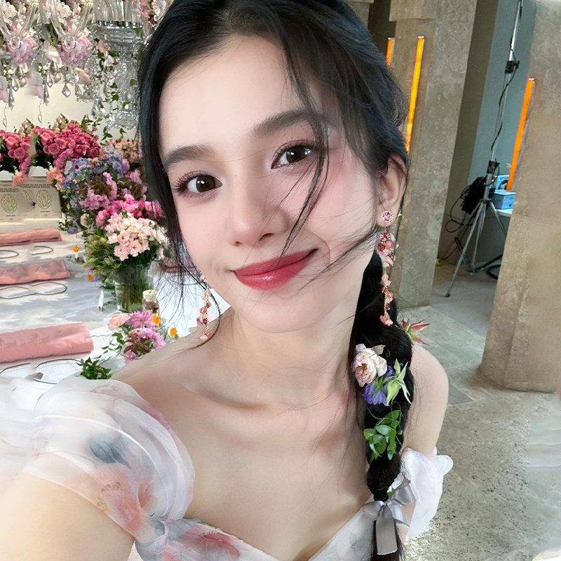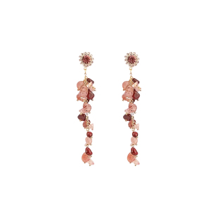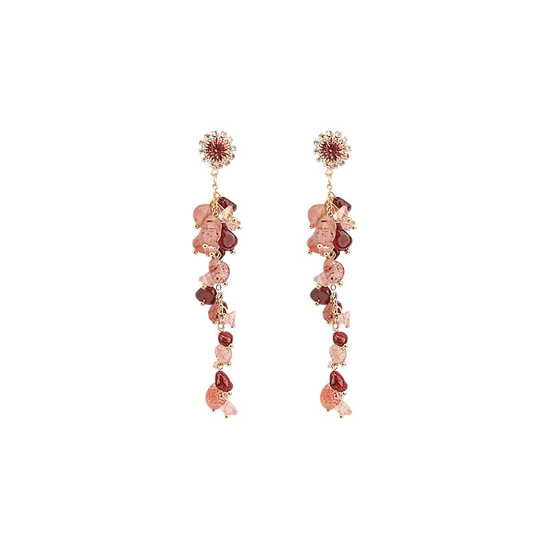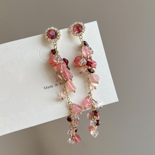 粉色碎石耳夹无耳洞女新款 耳钉海边度假夸张耳坠耳饰 流苏耳环长款