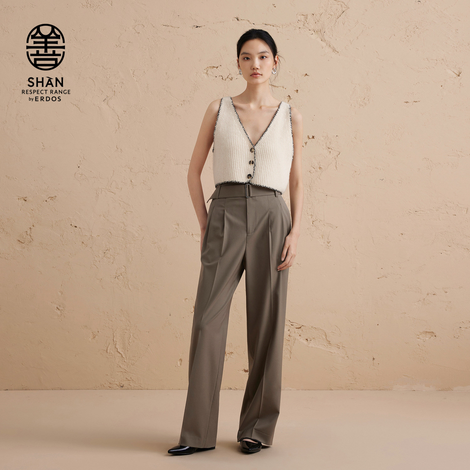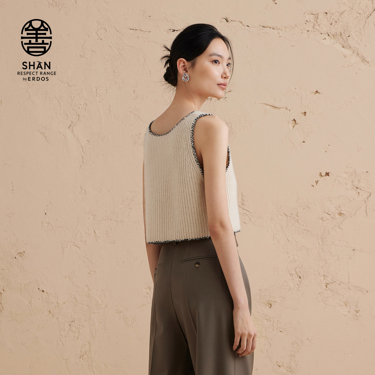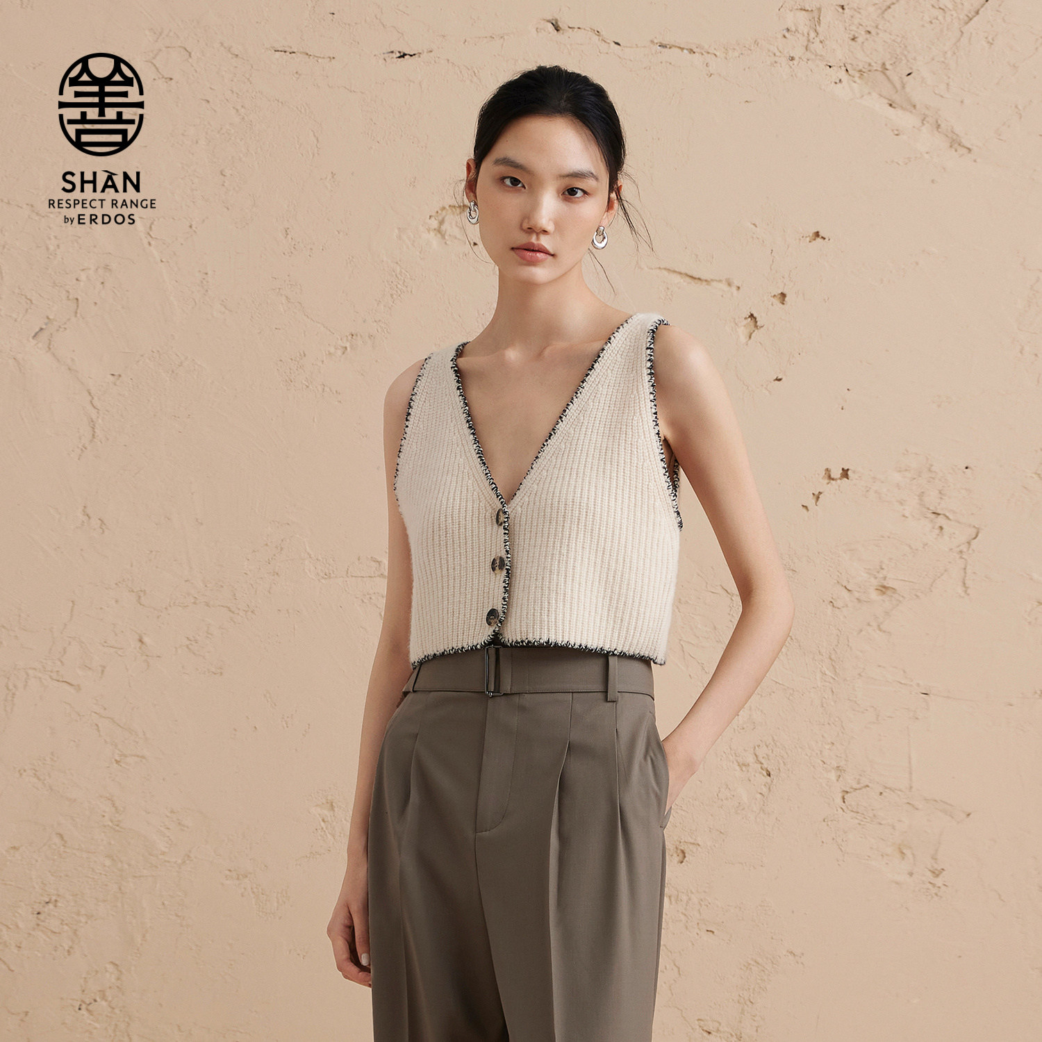 ERDOS善系列 内搭 V领单畦针织背心女士贝壳手工勾边厚款
