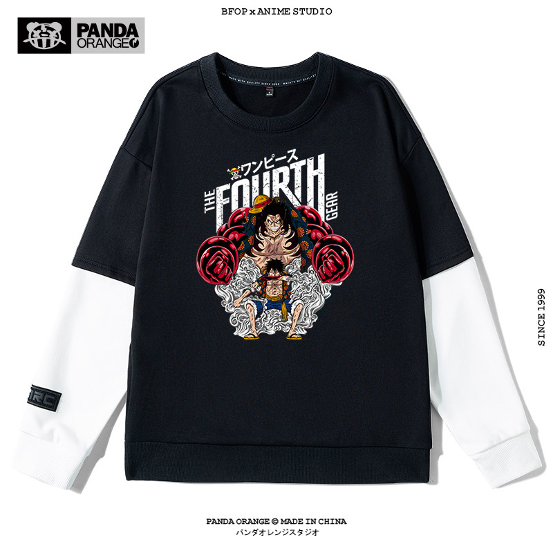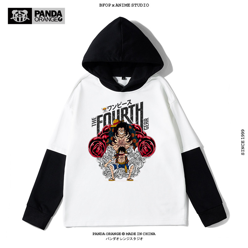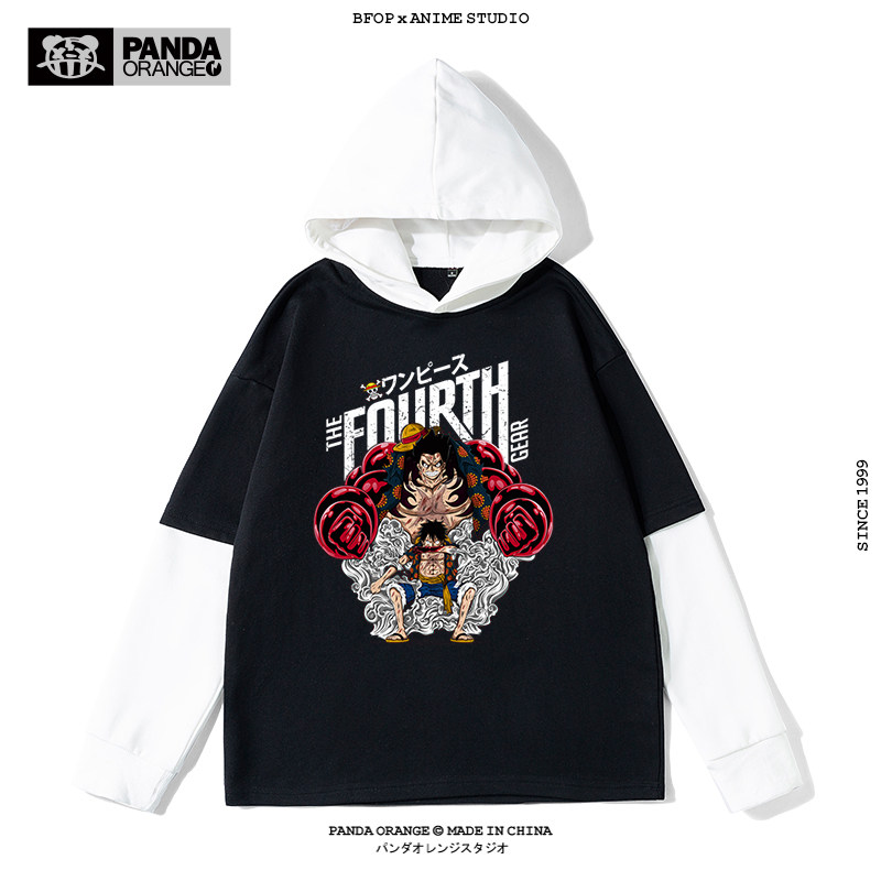 路飞4档卫衣男索隆山治艾斯连帽假两件衣服男生oversize高街t恤男