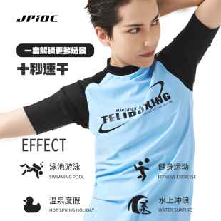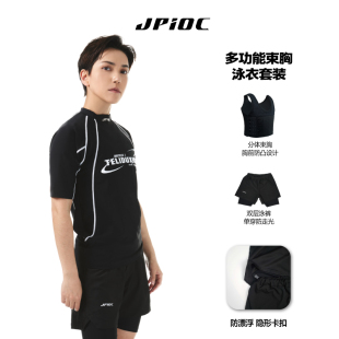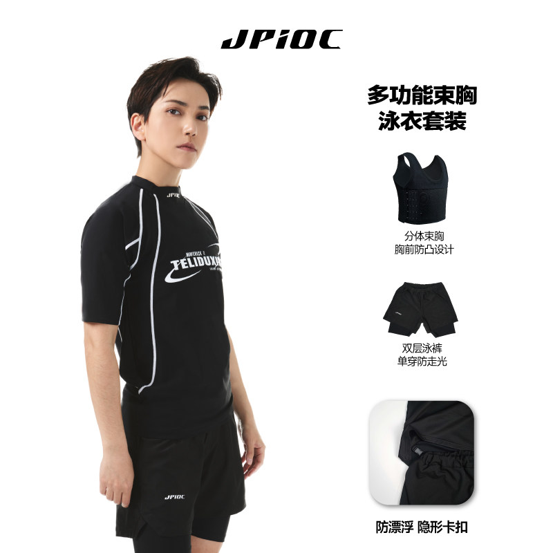游泳衣 温泉套装 JPIOC鲸崎束胸泳衣短袖 中性风保守分体速干泳装