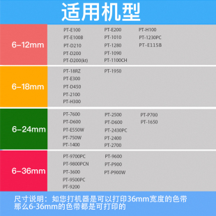 P900W 950W 普贴TZ2适用兄弟标签打印机色带36mm白底黑字36mm 9800 261PT 3600 9700固定资产管理标签 TZ2