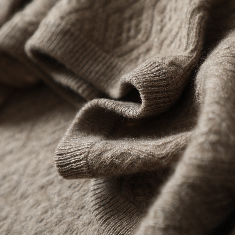 女纯羊绒套头开叉山羊绒毛衣 圆领羊绒衫 王炸立体提花 秋冬新款