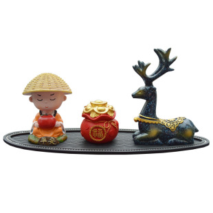 一路平安鹿汽车摆件车内饰品摇头和尚男士 饰用品 车载车上中控台装