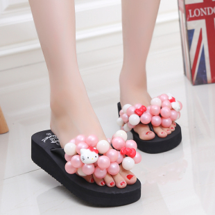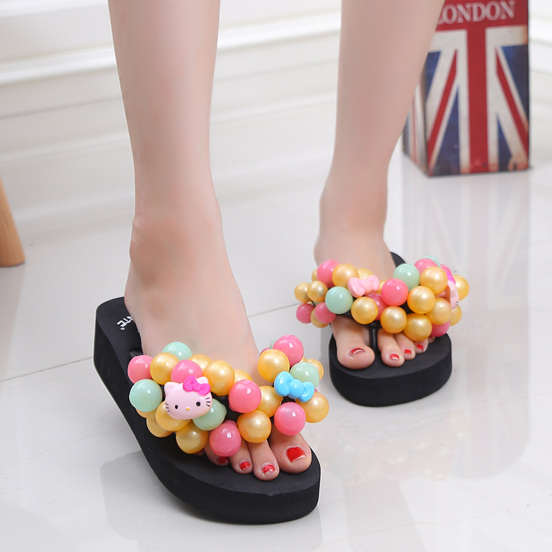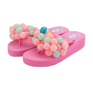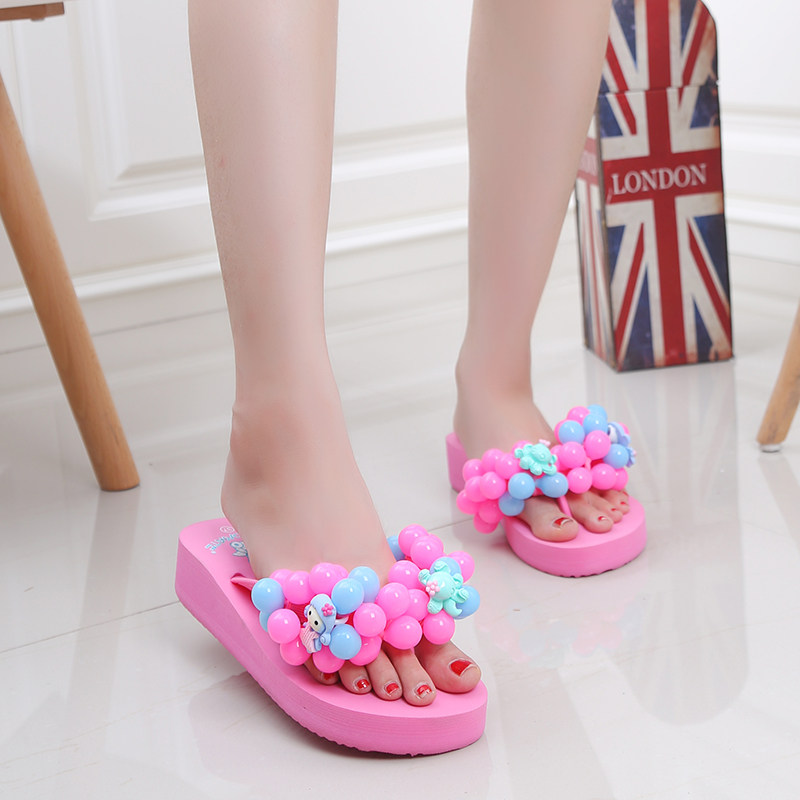 坡跟松糕跟家居凉拖鞋 葡萄人字拖球球拖鞋 厚底防滑学生度假沙滩鞋