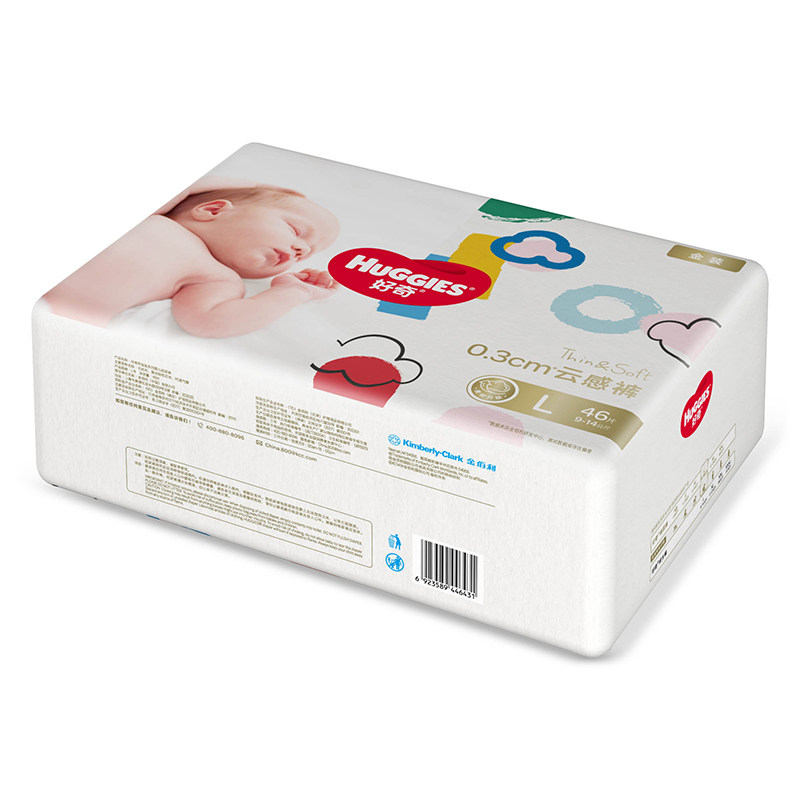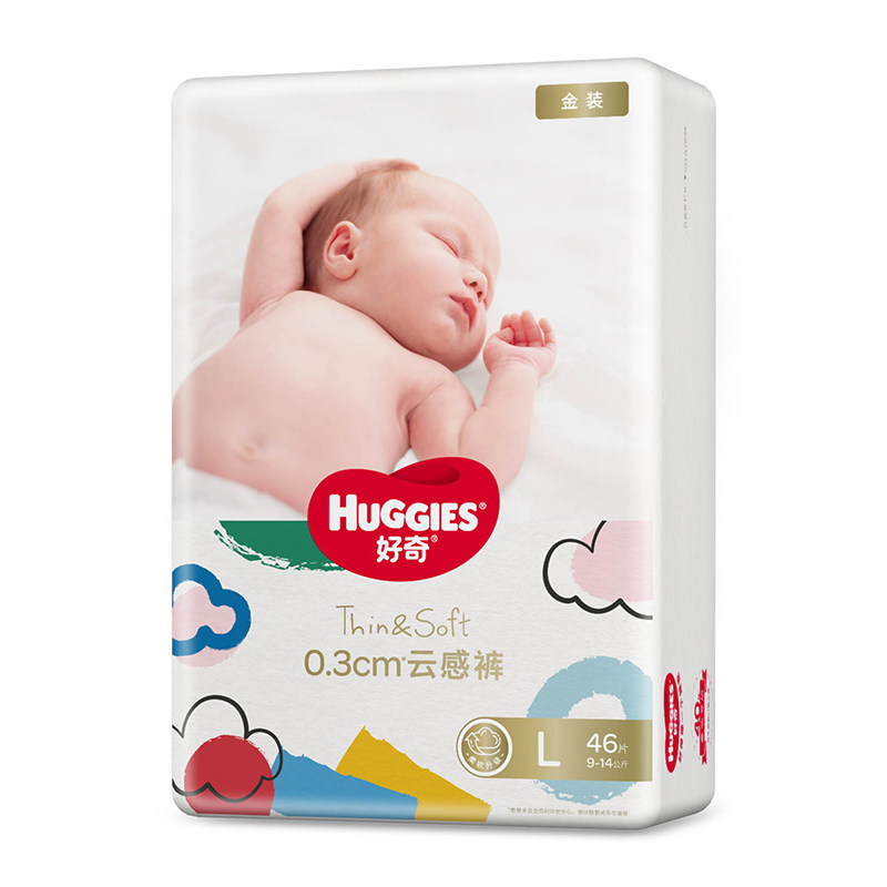 6宝宝L码 L40 超薄透气干爽亲肤尿不湿大号L46 婴儿纸尿裤 好奇金装