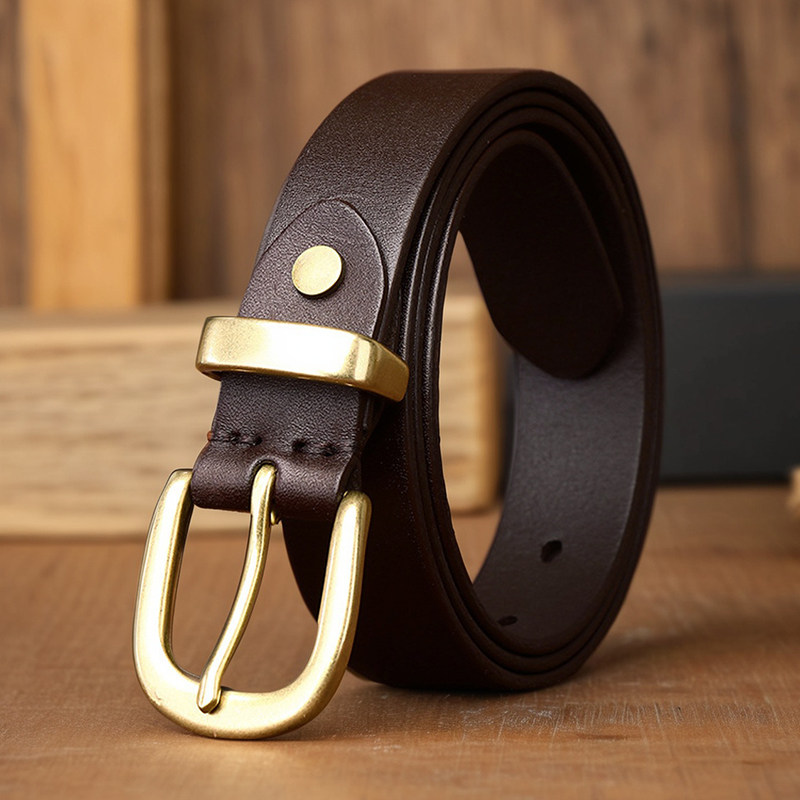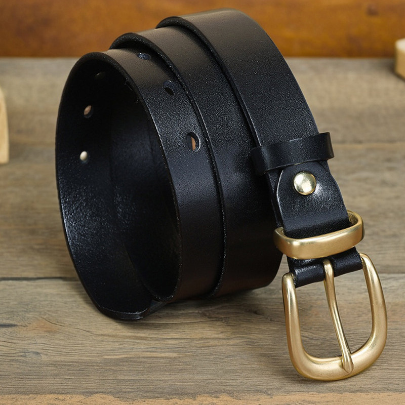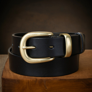 腰带简约 休闲百搭牛仔裤 时尚 简约头层牛皮带铜扣女士真皮黑色韩版