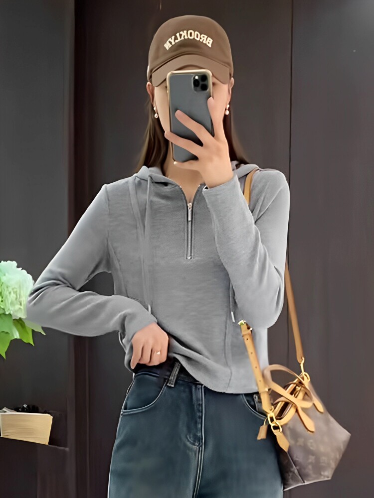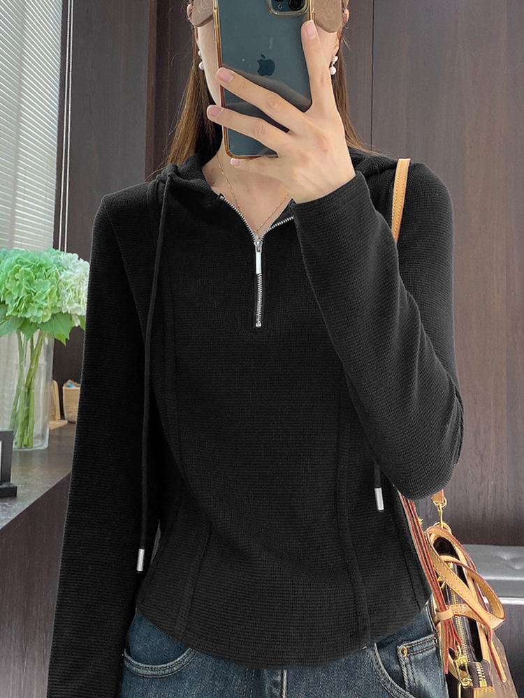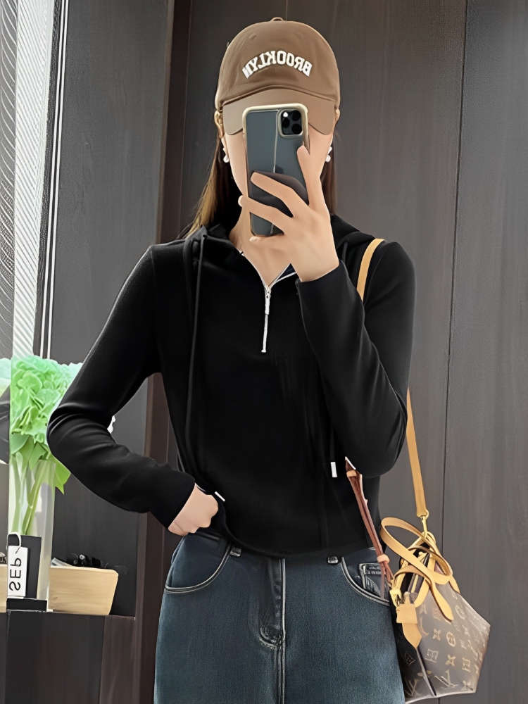 卫衣女春秋季 洋气修身 2026新款 时尚 内搭上衣 爆款 拉链连帽打底短款