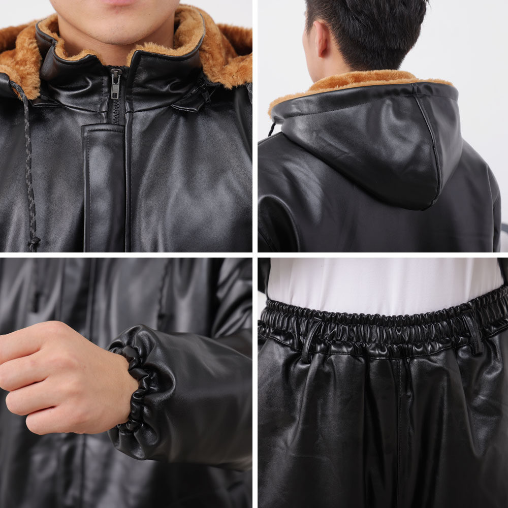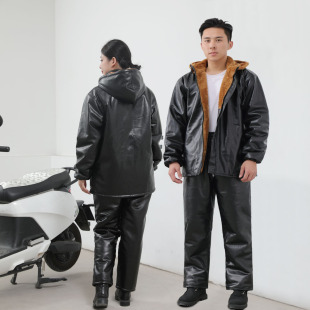 男女防风保暖加绒加厚正阳 干活皮衣冬季 骑行代驾皮裤 外卖骑手套装