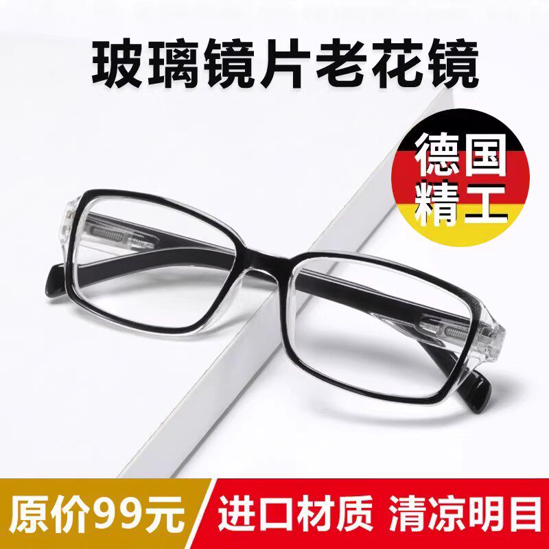 弹簧腿玻璃老花镜男女抗疲劳耐磨镜片高清水晶石老人老光老花眼镜
