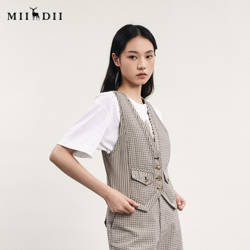 西装 短款 马夹241MM0079 复古帅气修身 谜底格纹小马甲女春新款