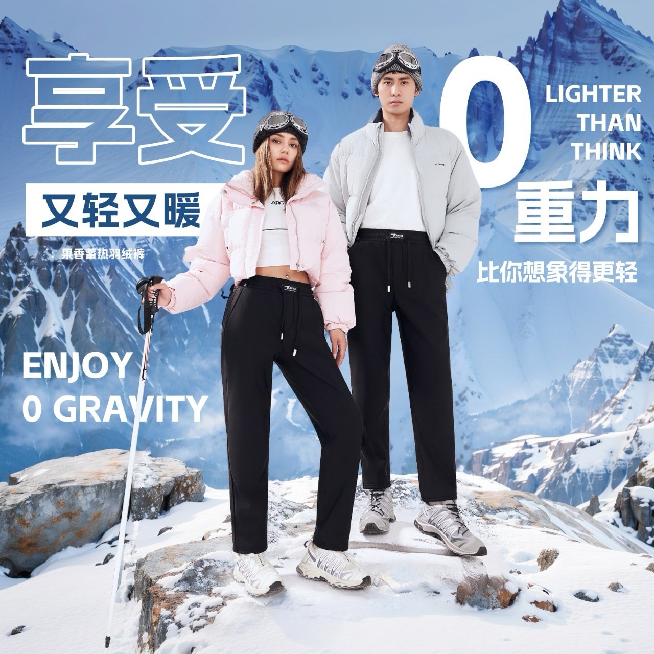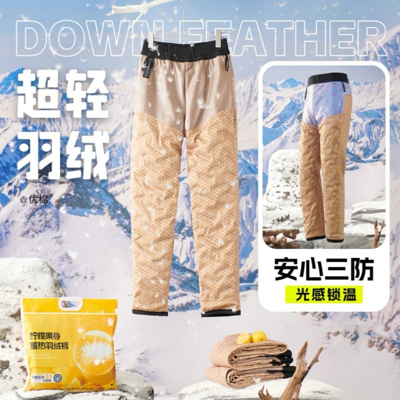男女款 90白鸭绒冬季 保暖加厚休闲裤 三防光感UV吸热羽绒裤