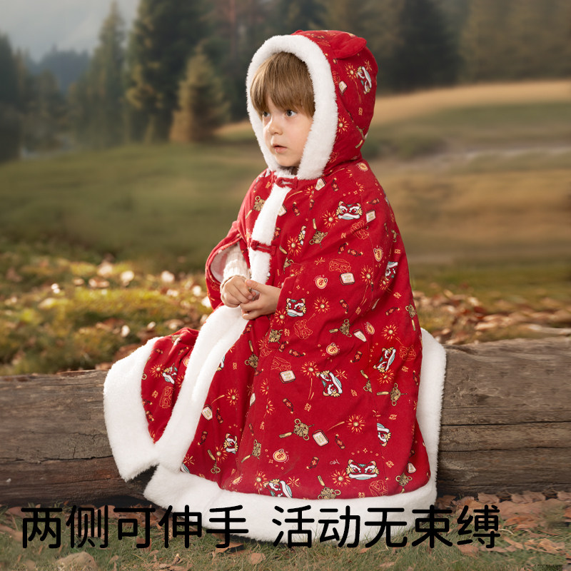 欧孕婴儿斗篷宝宝蛇年战袍新年红色披风可伸手秋冬外出披肩拜年服