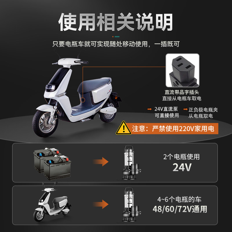 直流潜水泵48V60V72伏农家用电瓶车电动通用小型灌溉抽水机小体积