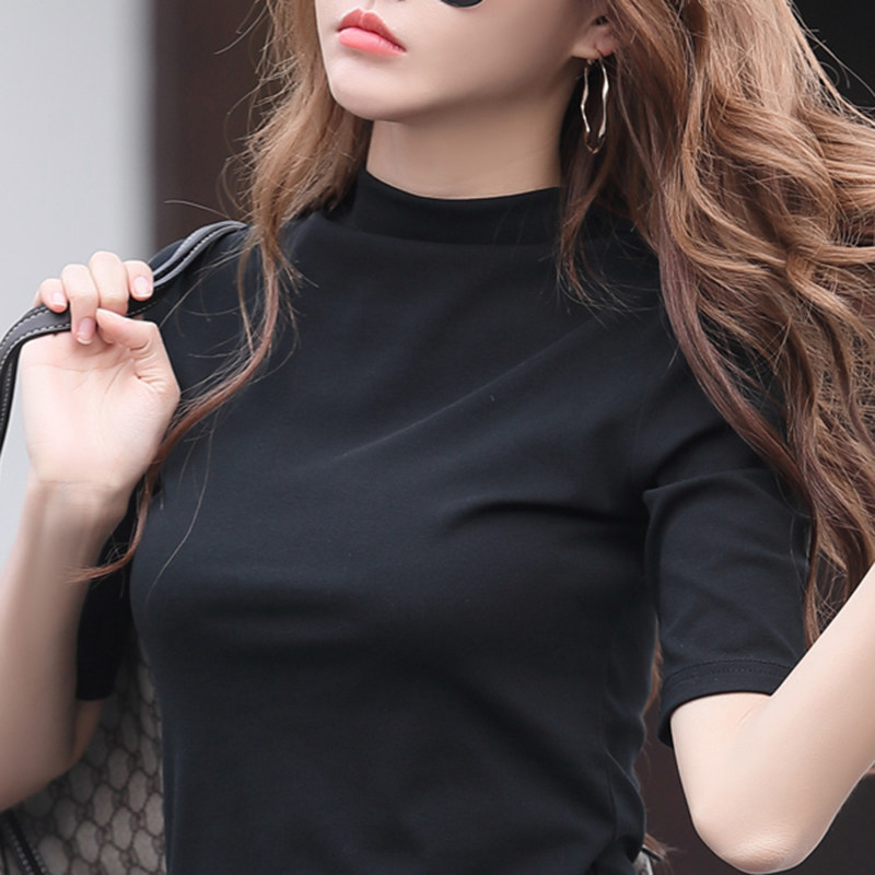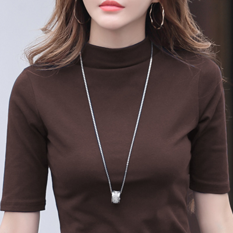 打底衫 修身 女春秋新款 大码 内搭上衣 妈妈纯棉t恤衫 半高领纯色中袖