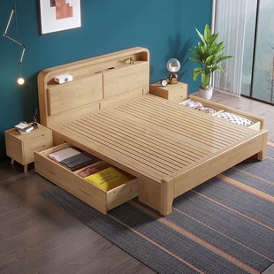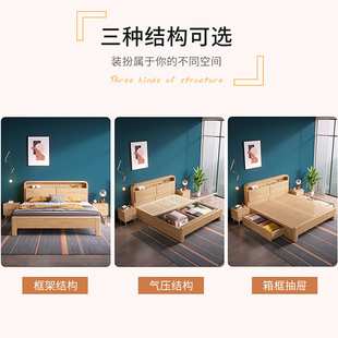 现代简约实木床1.8米主卧双人床1.5M单人经济型高箱储物大床
