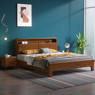 床实木床现代简约1.5m主卧家用橡木床架胡桃色1.8m全实木床双人床