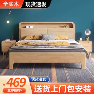 全实木床1米8双人床家用卧室大床原木橡木简约出租房1.2米单人床