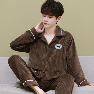 法兰绒加厚保暖可外穿冬天家居服套装 珊瑚绒睡衣男款 长袖 男士 冬季