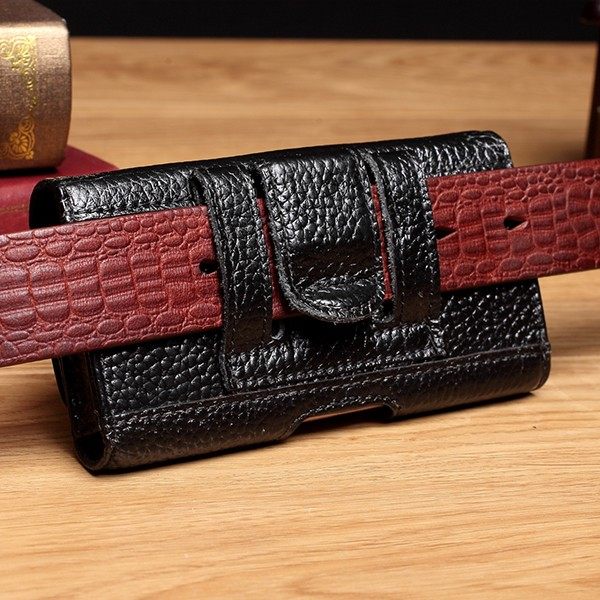 5.5 5.0 6.8寸手机挂腰包皮套 超薄4.7 手机腰包男真皮穿皮带横款