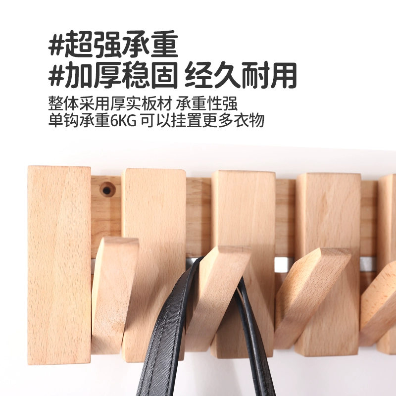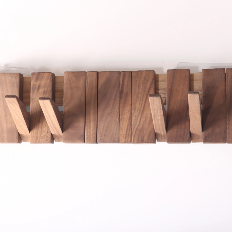 钢琴键挂钩胡桃木挂衣钩进门玄关挂衣架壁挂墙上门后打孔固定粘胶
