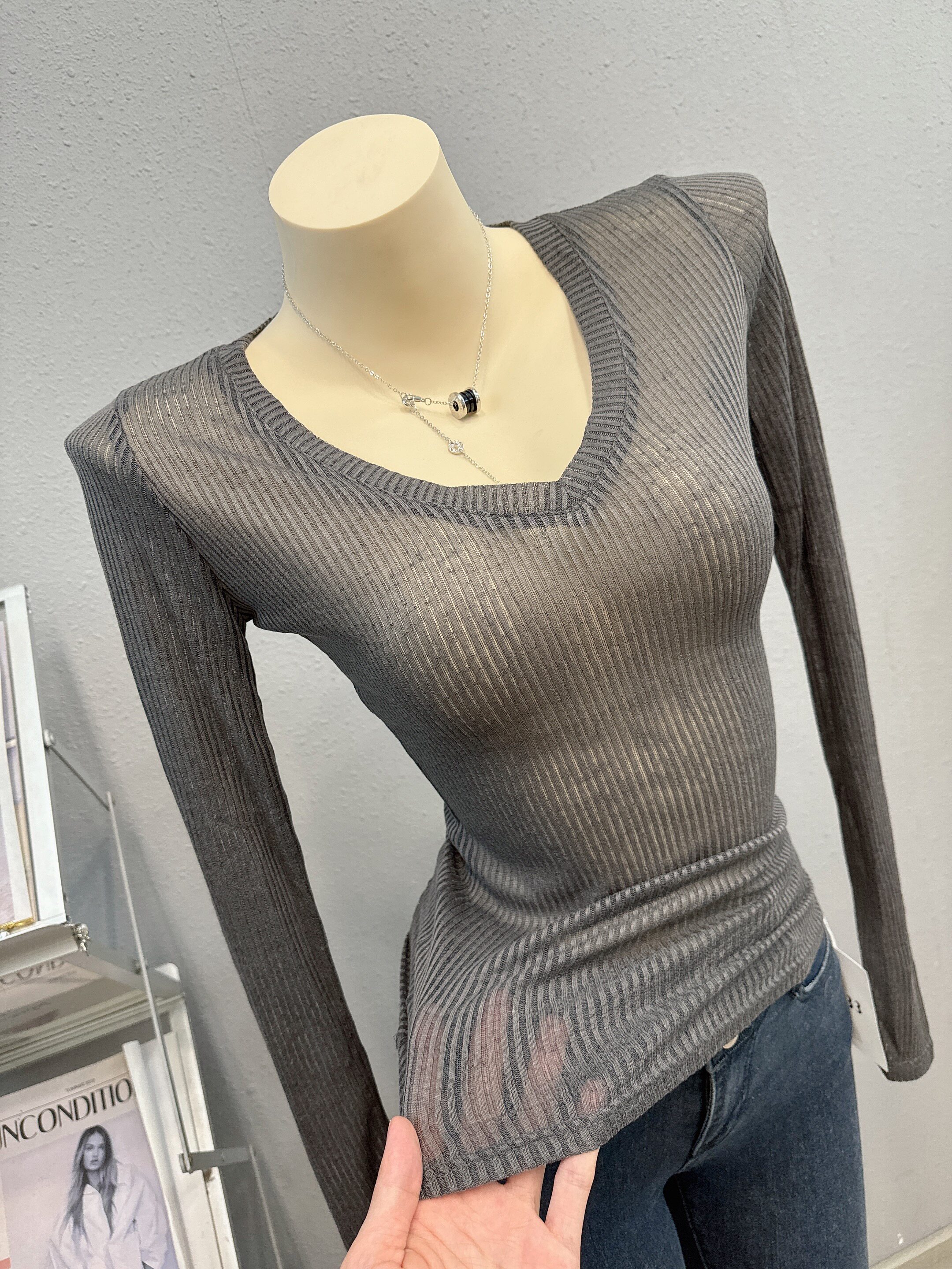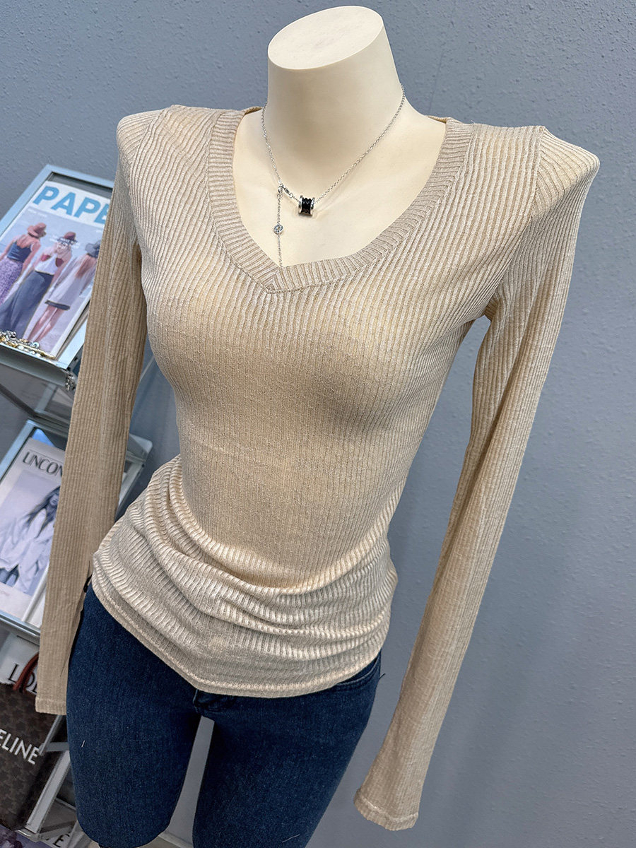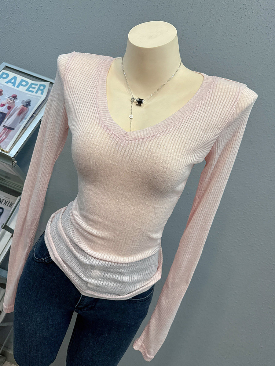 新款 上衣V领纯欲薄款 防晒衫 性感透视修身 小红书T恤女 长袖 2024夏季