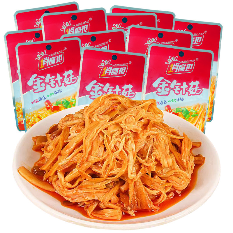 香辣金针菇开袋即食小零食麻辣包装 大袋速食炸椒味下饭菜红油食品