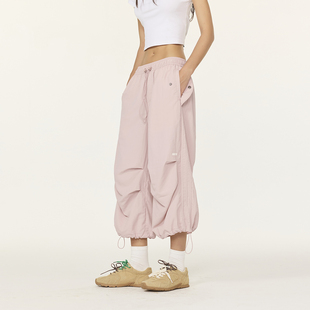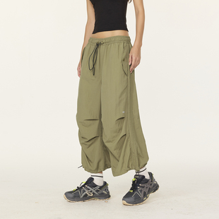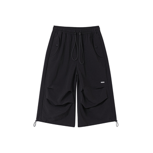 休闲七分裤 潮牌夏季 子 男女宽松阔腿直筒裤 FORNINES褶皱7分伞兵裤