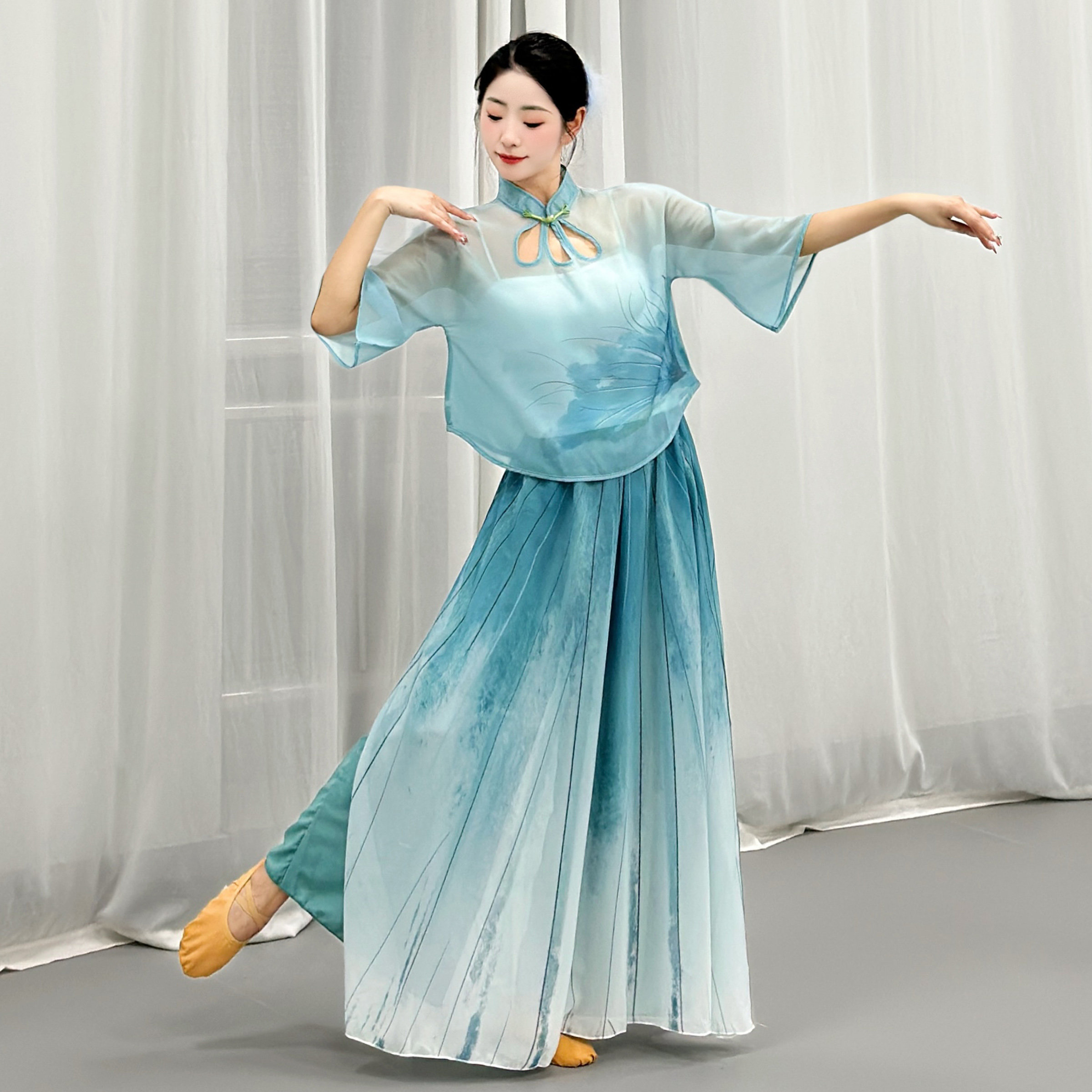 日常古典舞服装 飘逸舞蹈裤 练功服女中国舞形体服现代舞舞蹈服套装