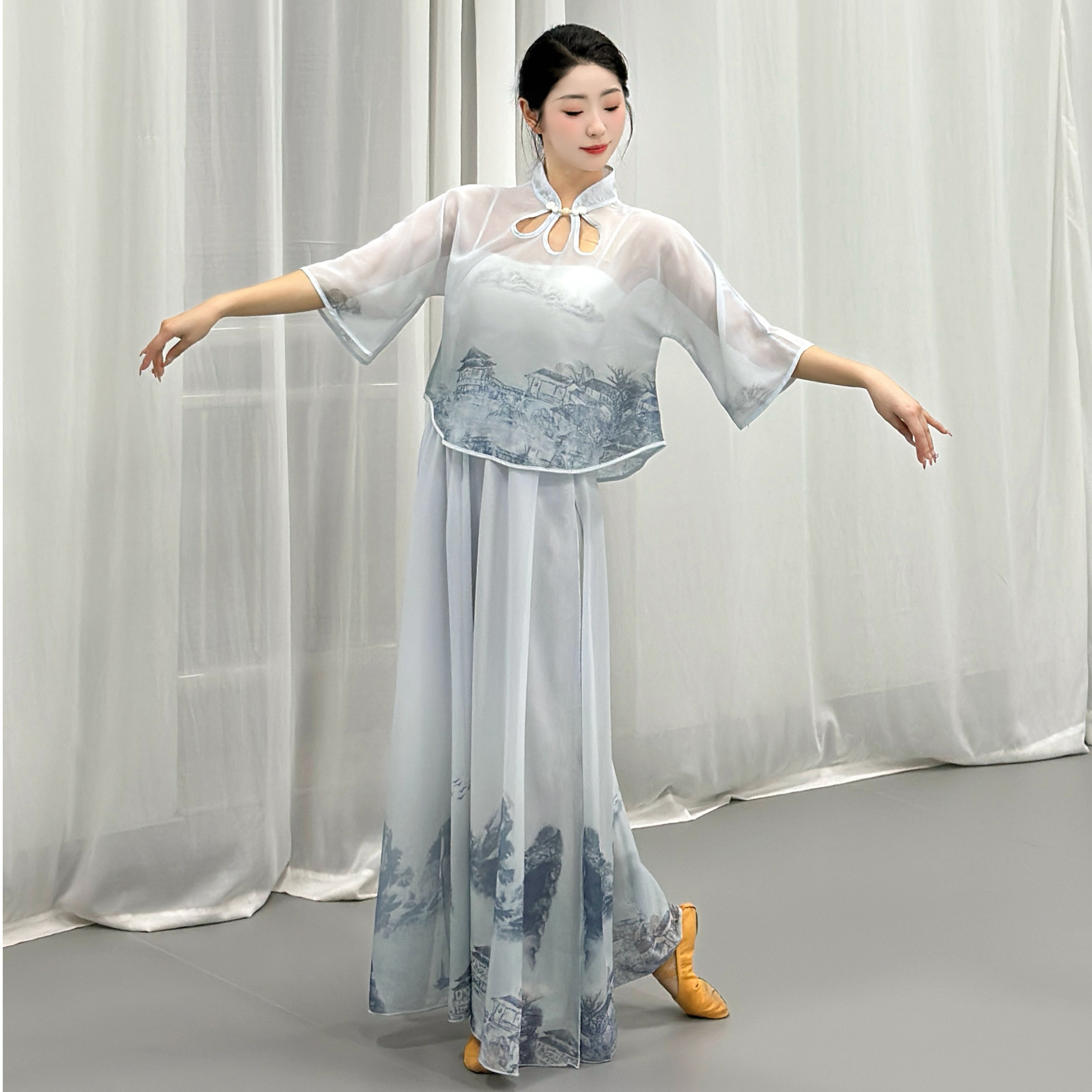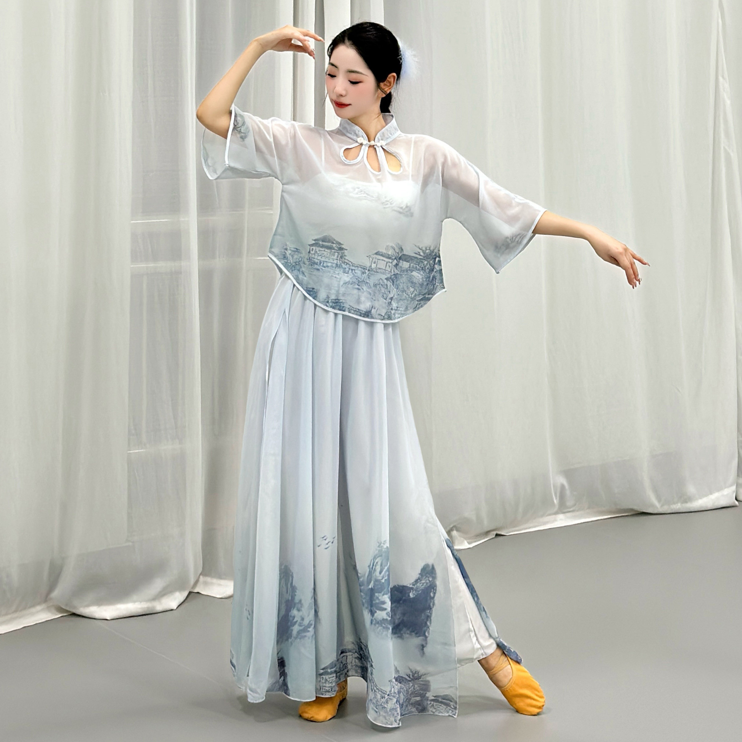 古典舞纱衣身韵练功服女飘逸演出服艺考中国风仙女基训舞蹈服上衣