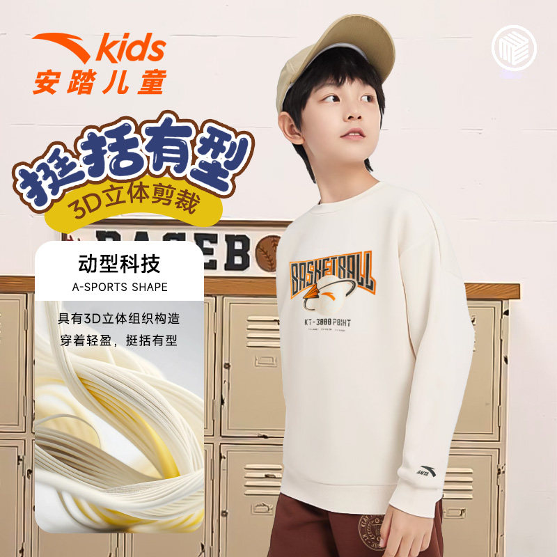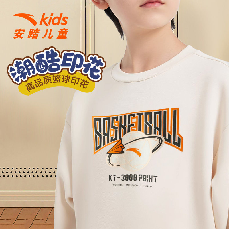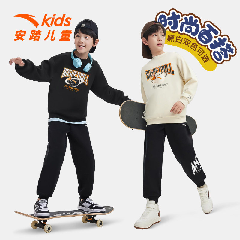 安踏儿童卫衣针织套头衫 百搭亲肤柔软大童卫衣 男童卫衣秋冬保暖款