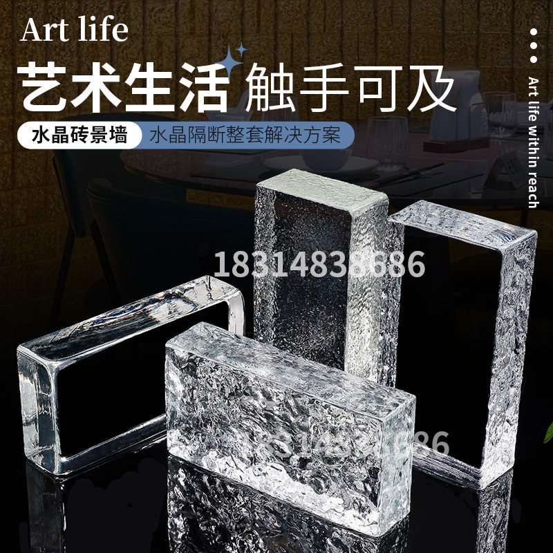 玻璃砖超白水晶砖方形透明卫生间隔断墙屏风玄关实心双面冰纹砖块