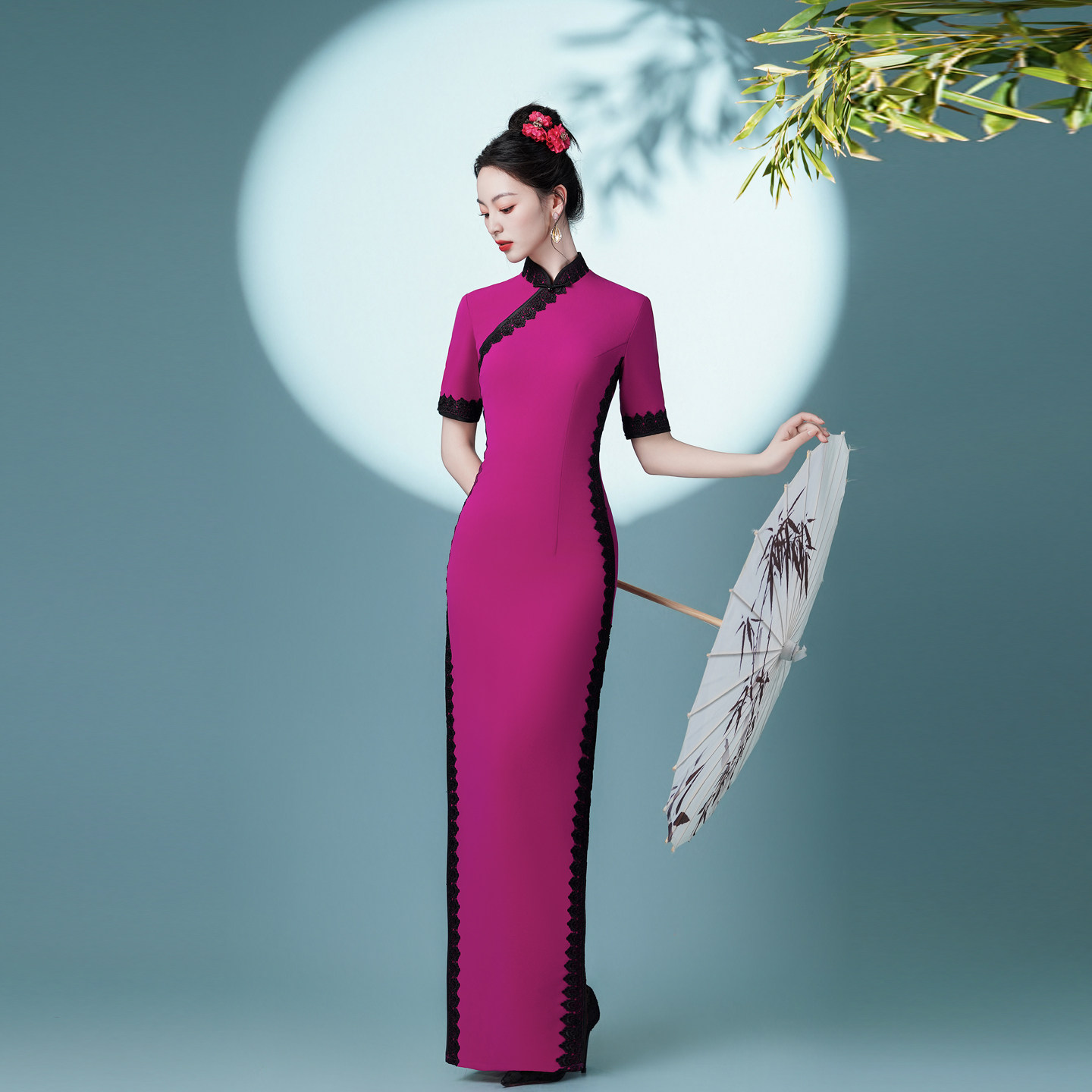 性感修身 改良旗袍黑色网纱连衣裙女秋季 包臀长裙 新中式 GirlsAt18