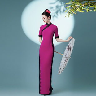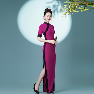 连衣裙 年会晚礼服改良版 旗袍年轻款 黑色丝绒形体服2025气质中长款