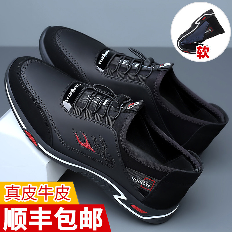 男士 薄款 休闲鞋 英伦潮流圆头软底透气2021秋季 皮鞋 男鞋 男夏季