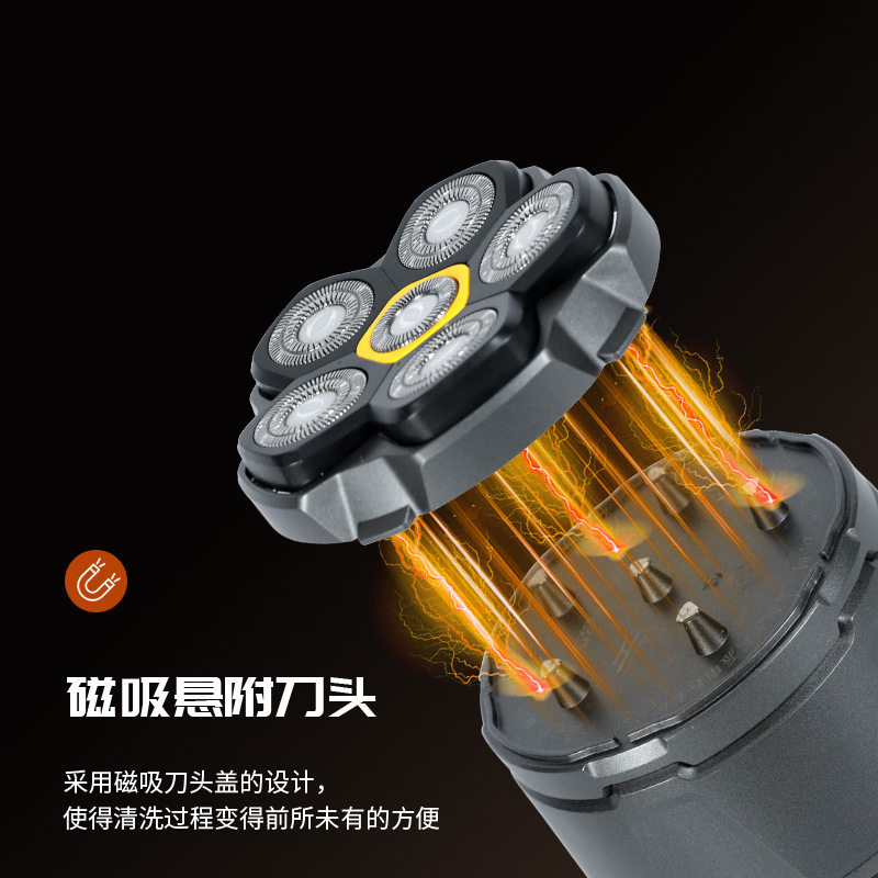 磁吸六头浮动双环刀网电动剃须刀大功率光头神器男士 家用刮光头机