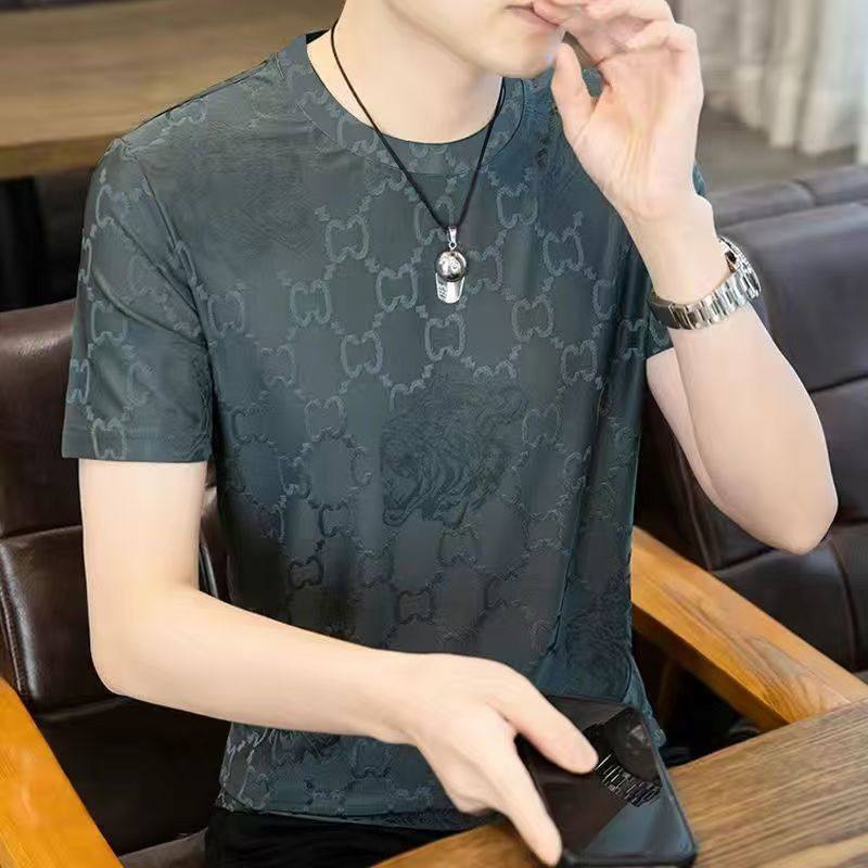 t恤男2025新款 半袖 夏季 提花体恤潮流男装 上衣服 薄款 冰丝速干短袖