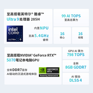 微星绝影16 酷睿U9 285H 2.5K MSI 笔记本电脑RTX5070独显 OLED屏16英寸轻薄全能游戏本官方 轻薄本
