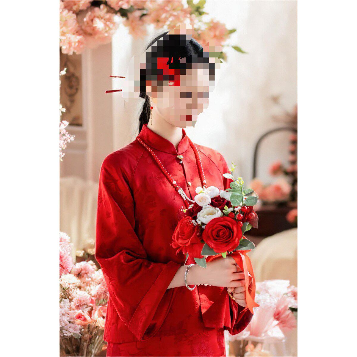 套装 出租满庭芳逢吉 订婚礼服新中式 春季 敬酒服 红色旗袍2025新款