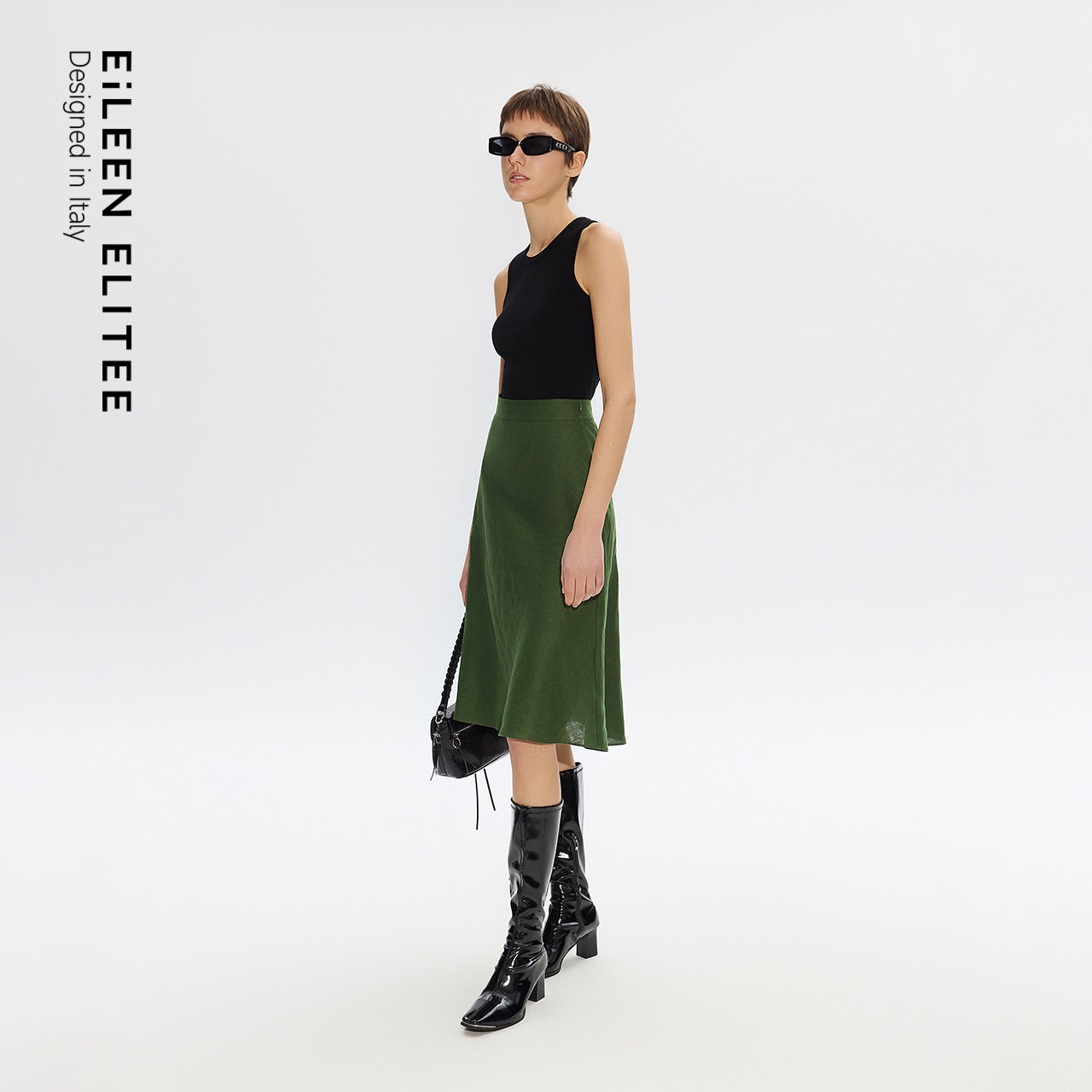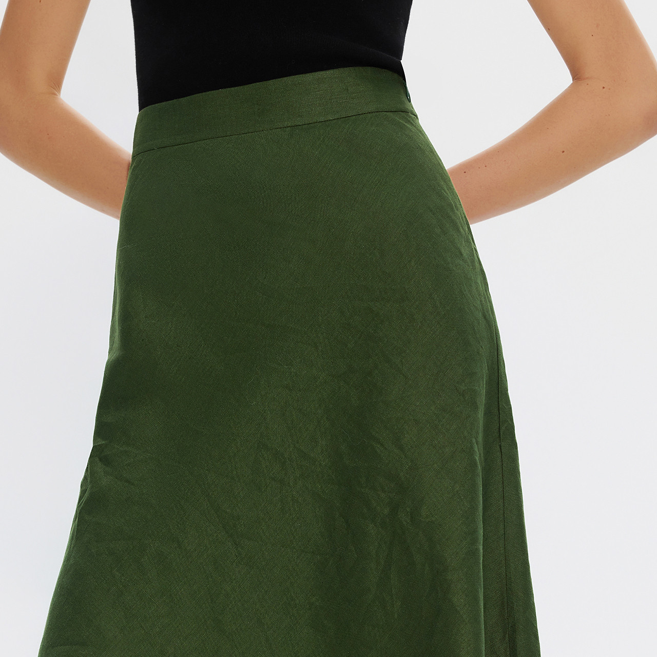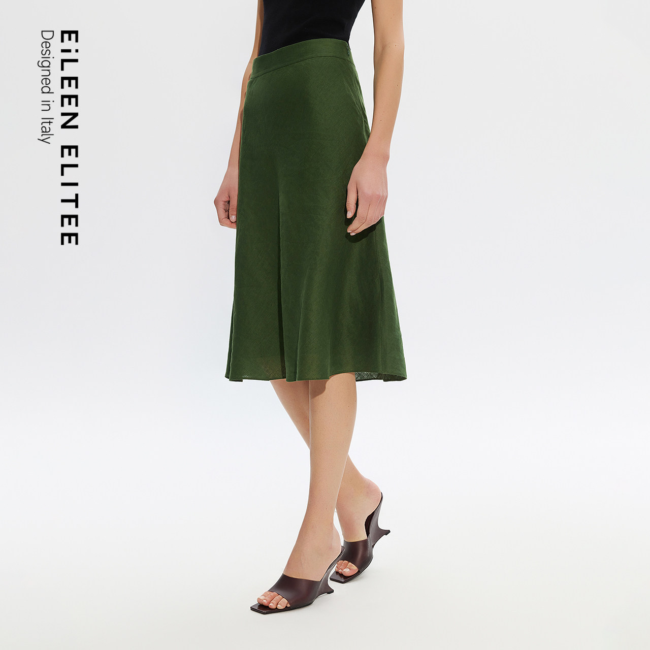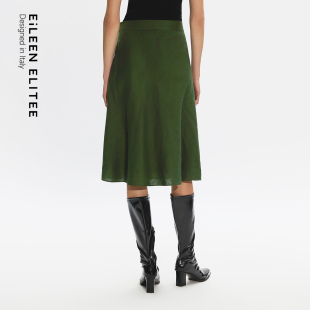 新款 朗姿25纯亚麻绿色清新时尚 伞裙优雅通勤风高级感OL半身裙夏季