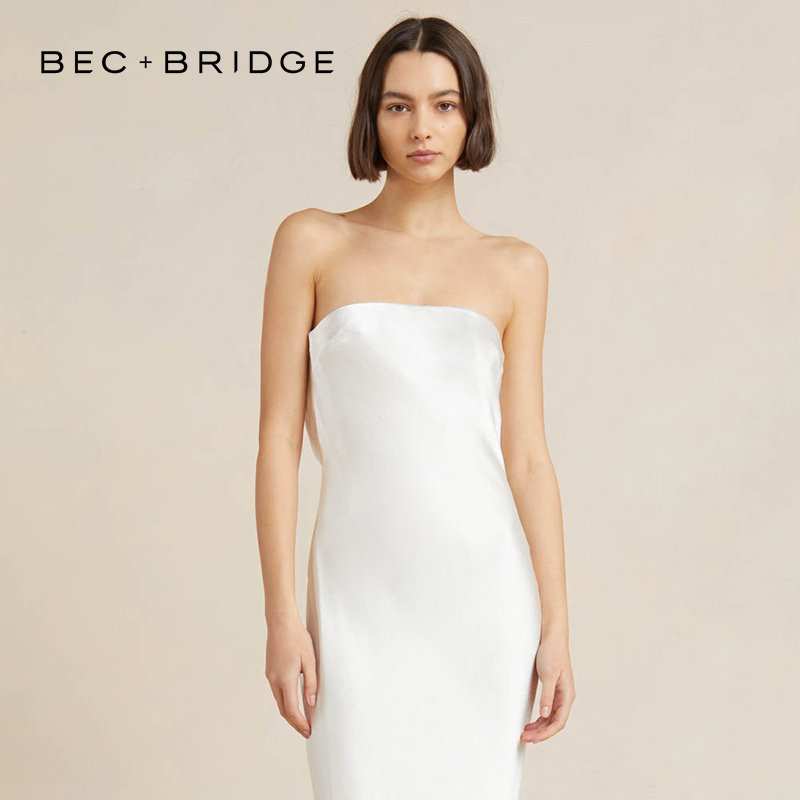 BECBRIDGE 月光之舞慵懒显瘦超模抹胸连衣裙女夏神仙裙子 气质新款