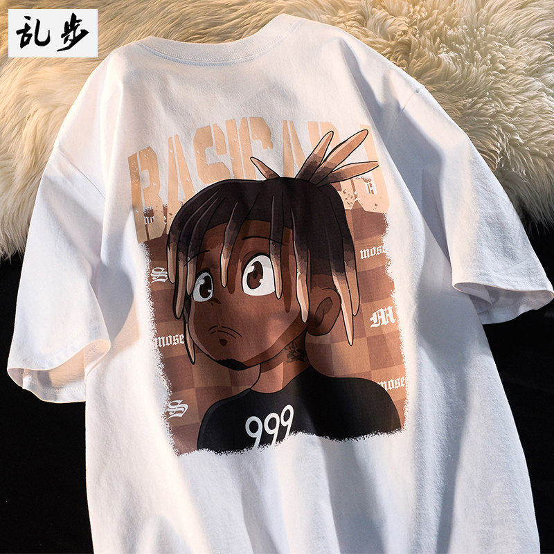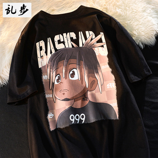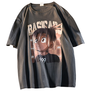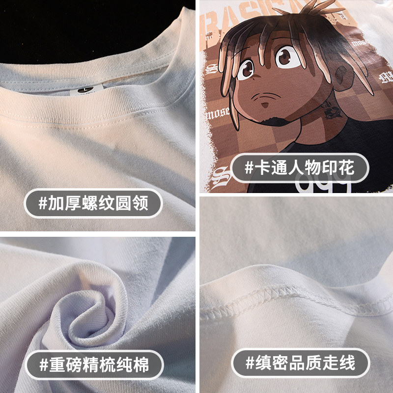 男装 短袖 衣服宽松嘻哈高街重磅纯棉半袖 复古潮牌五分袖 t恤男美式